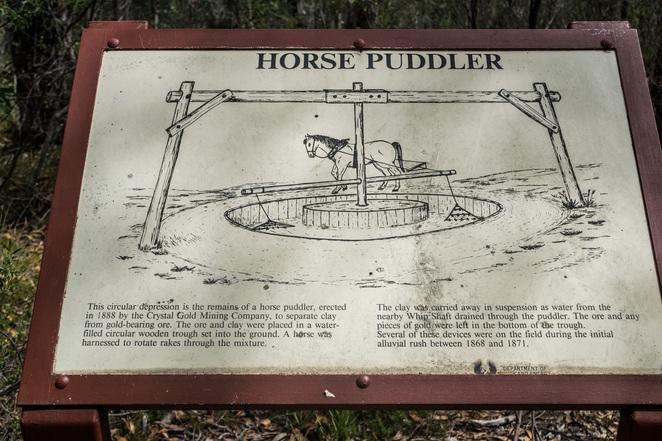 Visit the old diggings at Chapel Hill and follow the sign-posted path to find some of these relics then on to Jupiter Creek to follow the Heritage Trail which interprets successive phases of mining at that site. It includes the 1869 chimney associated with the Beatrice Gold Mining Company, sluicing dam (1906) and the Fossicking is permitted at both sites but mechanical implements are not allowed and holes must be backfilled.